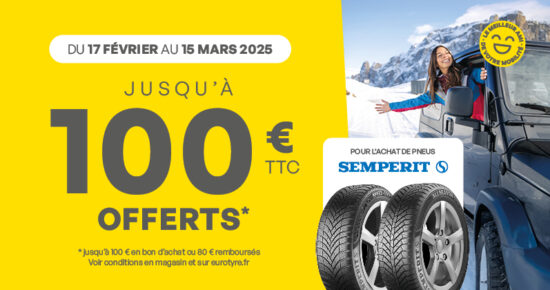 Du 17 février au 15 mars 2025, jusqu’à 100€ offerts en bon d’achat ou 80€ remboursés pour l’achat de pneus […]