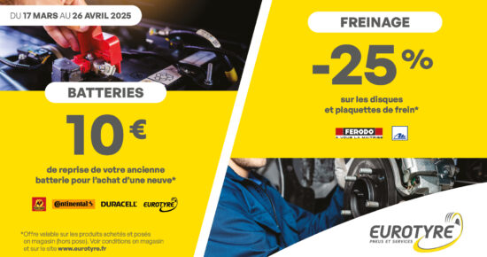 Du 24 mars au 26 avril 2025, pour l’achat et la pose de 2 ou 4 pneumatiques, recevez jusqu’à 130€ […]